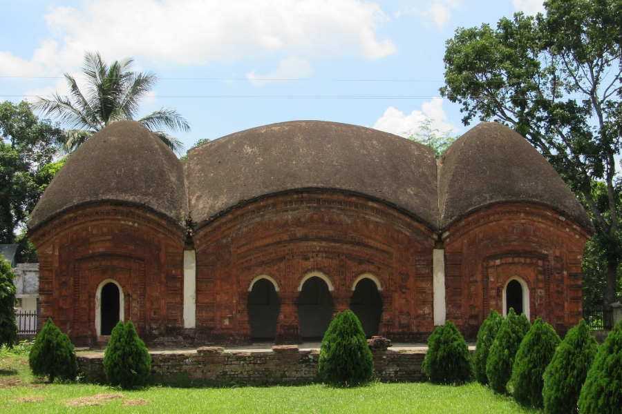 Cross the bridge on mighty river Jamuna (Brahmaputra). En-route visit Nabaratna Hindu temple at Hatikumrul. The Navaratna Temple builds 1704-1728 which is considered one of the largest Nine-spared temples in Bangladesh. Famous of its terracotta ornamentation plaques with flowers, fruits, leaves and deities. After visit drive again to Bogra. Overnight at Bogra.